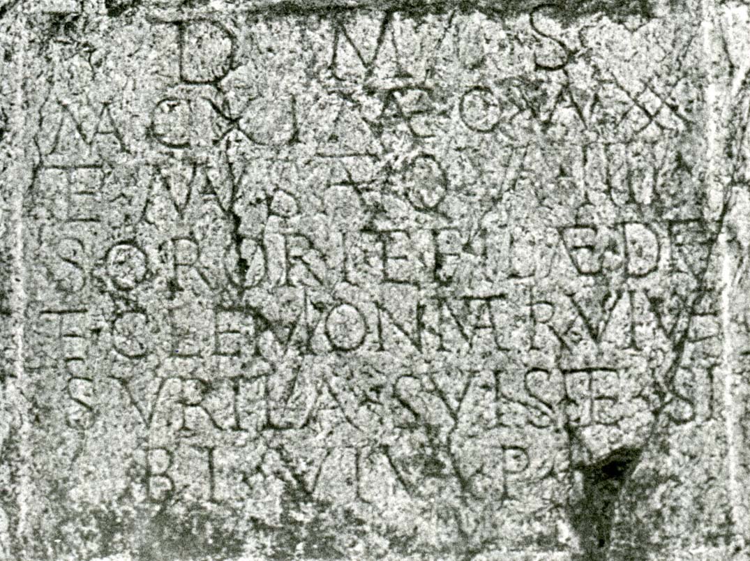 - Inscription field in a frame; dimensions: h. 44, w. 36 cm. Letters: 4 Ligatures: 2 MA, MAE, VAN 3 ET, MAV, TAE, VAN 4 ET, IL, AE 5 ET, ELT, MI, NI, MAT, RI, VAE 6 ET 7 VA.