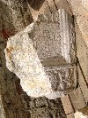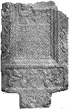 - Relief of a wake in the inscription field, above the inscription: man with cup, table with three legs visible. A vase with vines and grapes in a square moulding below the inscription field.