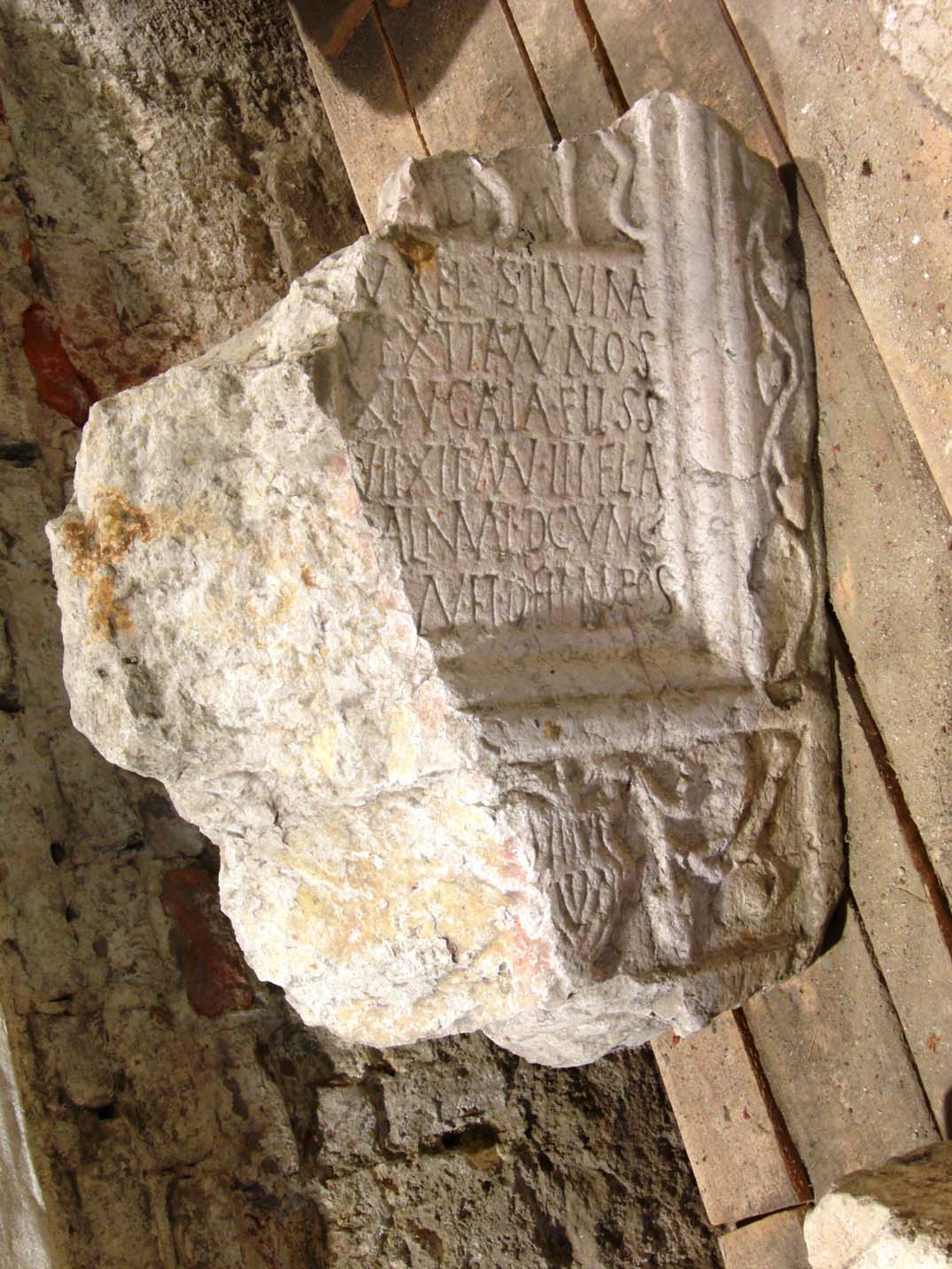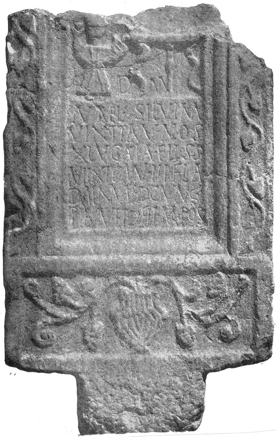 - Moulded inscription field, upper part broken off. Letters: Irregular, elongated letters. D and M incised inside the relief. 5 two vertical lines: viixit. Ligatures: 2 AV, NA.