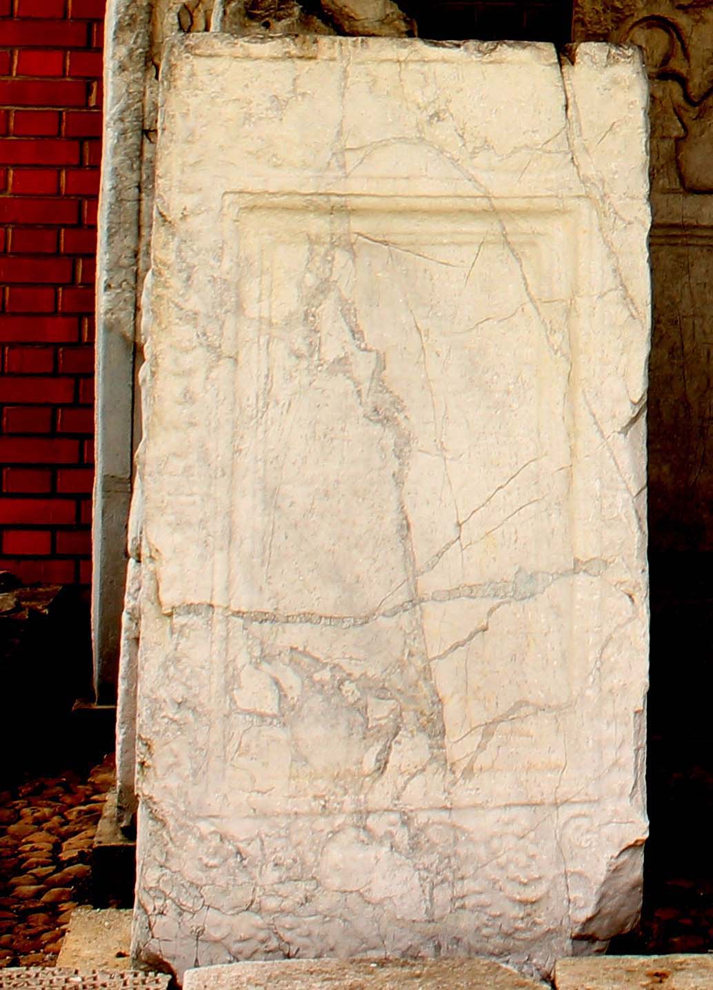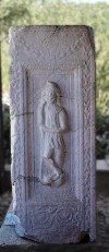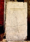 Sunken inscription field in a frame ornamented with vines. Dimensions: h. 78 cm, w. 42 cm.