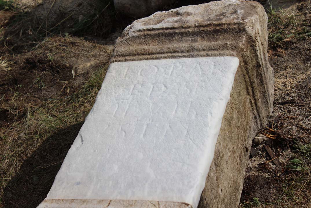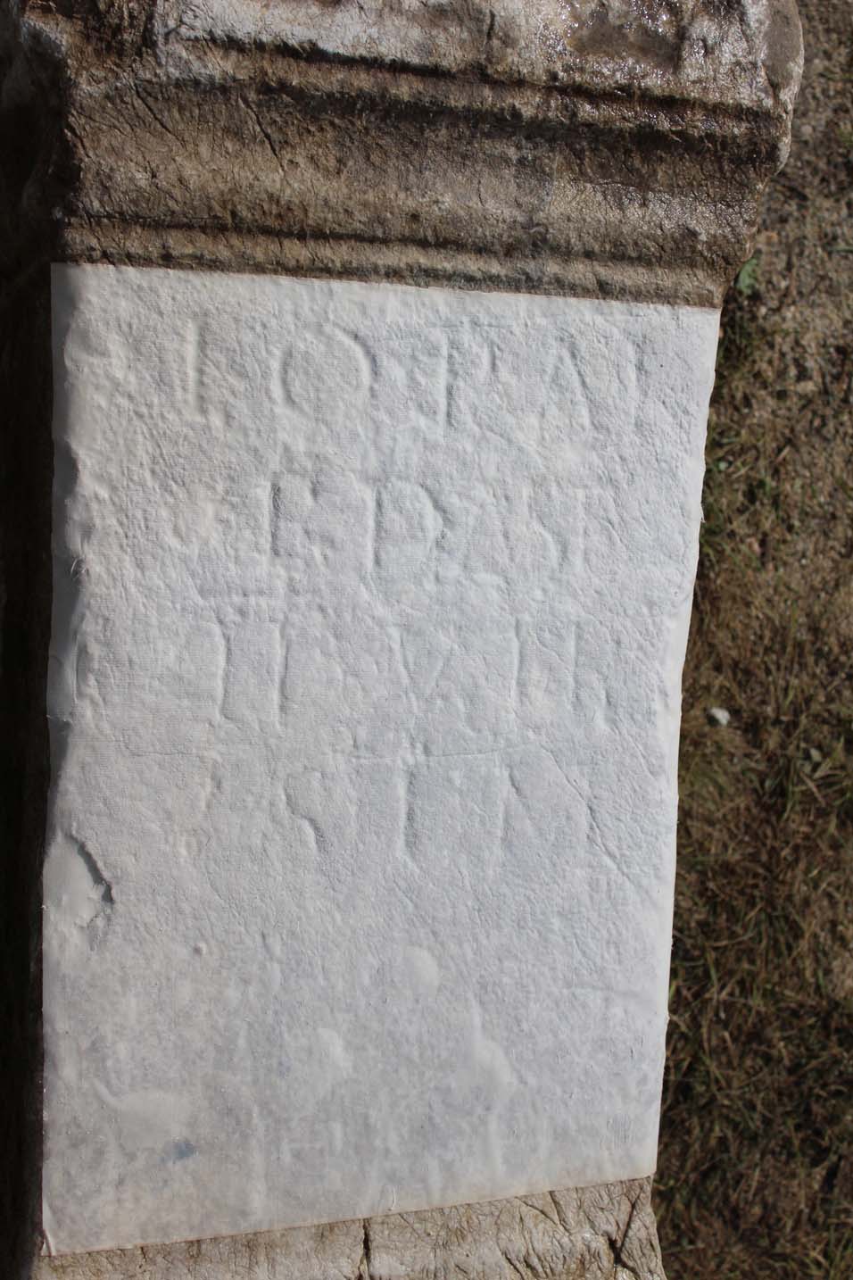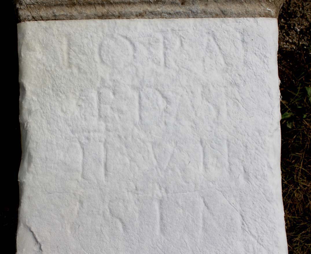 - Moulded inscription field. Letters: 6.5-5.5 cm.